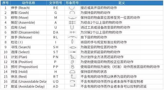 動作分析法:對操作者細微身體動作進行分析,刪除其無效動作,提高生產效率